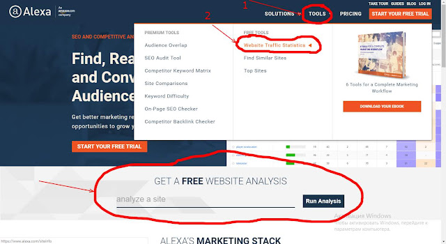 По сути, данные получаемые от анализа этого проекта не стоит воспринимать как последний и 100% источник, т.к. есть очень много способов, как владельцы хайп проекта могут имитировать трафик — прокси, буксы и тд.Сайт полностью на английском, посещая его в первый раз это может немного смутить. Что бы начать анализ сайта необходимо1. Выбрать вкладку на строке меню сайта «TOOLS«2 .Выбрать в меню страничку с названием «Website Traffic Statistics«Илипросто ввести название сайта, который хотите подробнее анализировать в строчку «GET A FREE WEBSITE ANALYSIS» и нажать кнопку «Run Analysis«