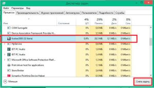 - Выделить правой кнопкой мышки конкретный процесс и выбрать «Завершить».